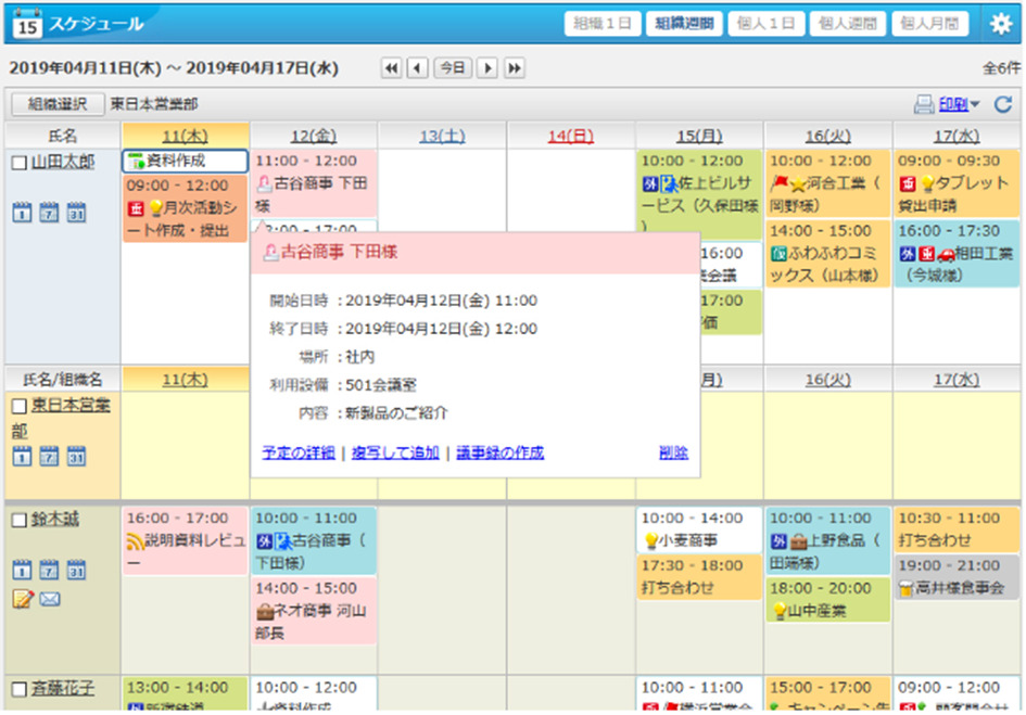スケジュール管理から、紙のハンコ出社をなくす電子承認まで、27種類もの便利な機能が最初から全部揃っています。