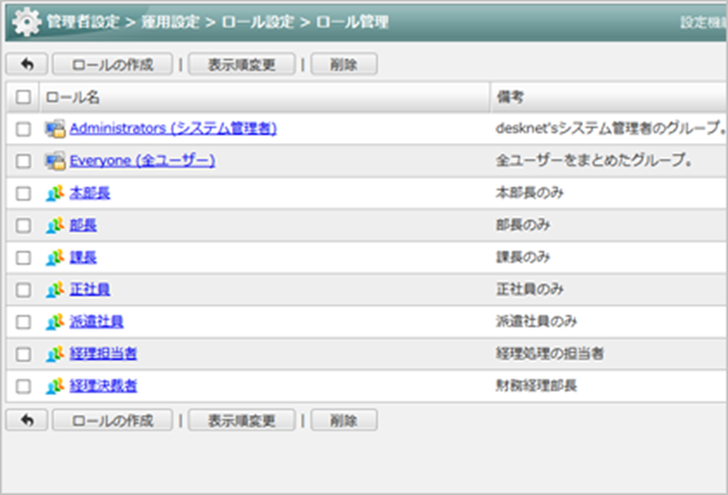 「部長」や「経理担当」など、役割をグループ化した「ロール」を作成します。