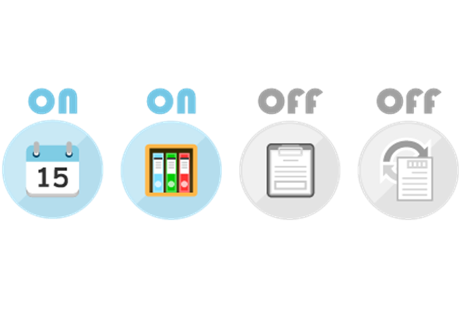 アプリケーションの表示 / 非表示を設定できます。必要最低限のアプリケーションでスモールスタートし、徐々に範囲を広げることでスムーズな社内展開が可能です。 また、部門ごとに表示 / 非表示を設定できるので、必要な部署だけで使用したり、一部署でテスト運用してから全体公開することもできます。