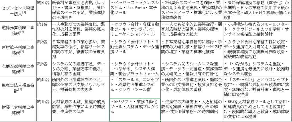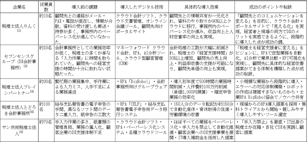 表:中小企業の税理士DX事例