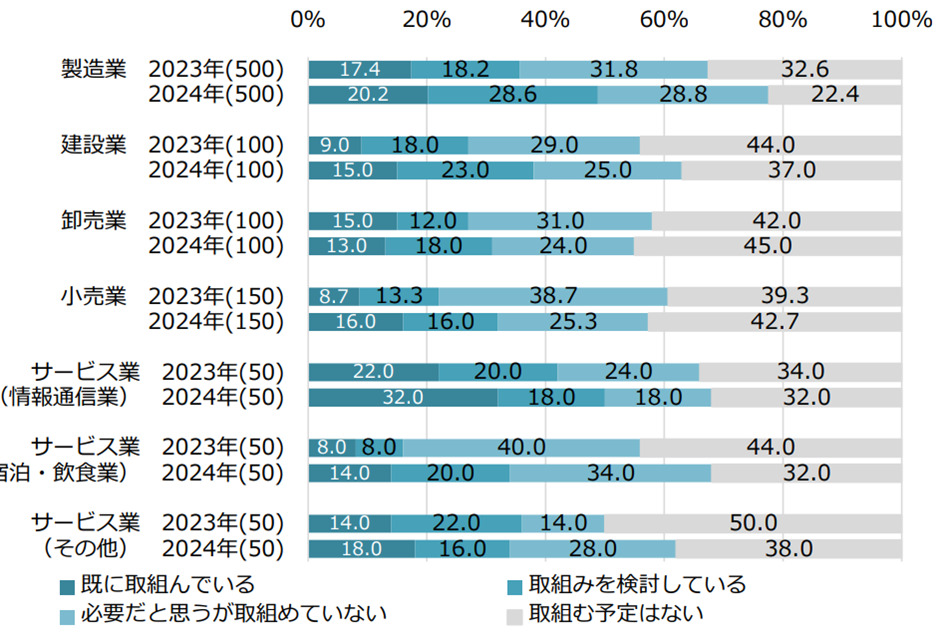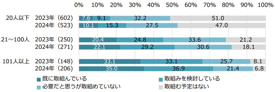 一方で、「取り組む予定はない」企業も約3割あり、二極化していることが分かります。(図表 2)