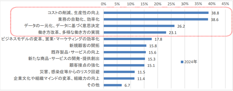 DXで特に期待されているのは、コストを下げて生産性を高めることです。